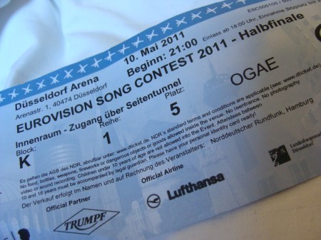 We can begin with that we had a pretty decent travel here, but I must say, after being on TWO FLIGHTS.. I felt molested! It was like I had been to a half-rough concert! What is that?! Ugh. I’m not really looking THAT much forward to that on Sunday! Either way, we finally got down to Köln (where I happened to run into Zdob si Zdub the first thing that happened!!! How awesome is that?) to check in the hotel, get ready and then pretty much RUSH to the arena to pick up our tickets, since they are provided by OGAE.