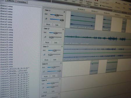So I did around 27 takes before I was somewhat satsified with what I had accomplished. I’m not really a singer, and also, this is a parody song on Hunchback and Steel Panther (in case no one gets it later on) so it’s not supposed to be top notch, but there is also a limit on how bad it can be. Once that was done, I sat down to chose which of the different takes were the best, and sorted it out to make the editing a bit easier.