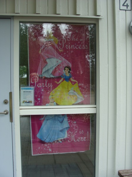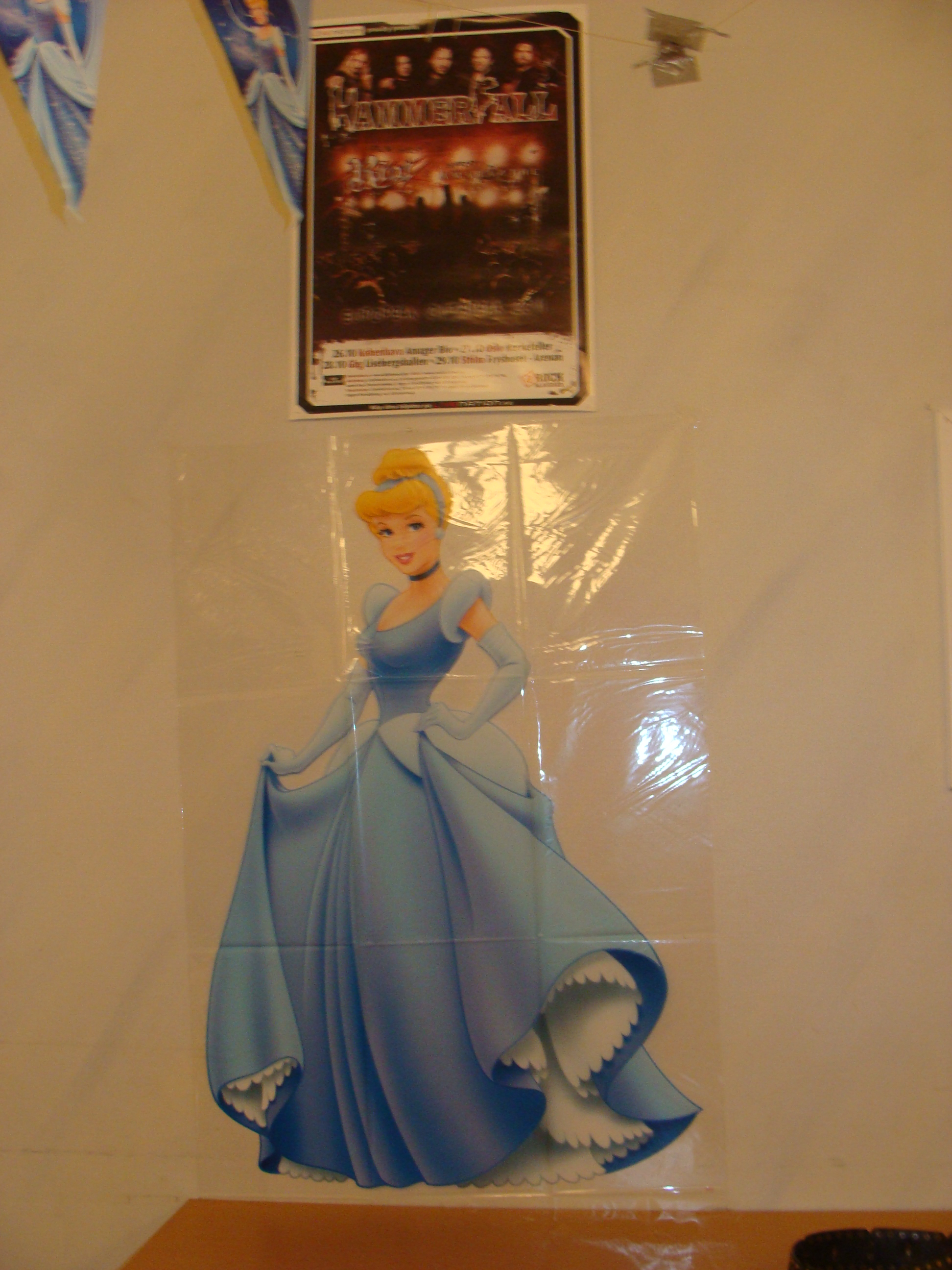 We had the three princesses mentioned above featured on the big wall together with some metal posters and white tablecloth with Princessthemed plates…