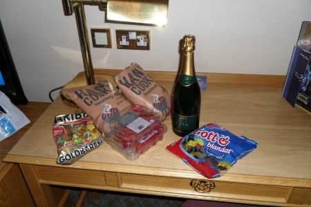 The boys had already ordered for us, so we pretty instantly got the food, which was duck. I have never had duck before, so it was kinda interesting, but OH so tasty! For desert we had like, icecream with applepie. That was also, extremly, good. After this, we got back to the hotel, sunk the last drips of Jack Daniels and then passed out…