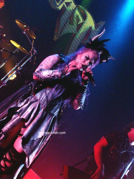 Today, was in fact, the release gig for “No Halos In Hell”, or at least as close to it as you could say as this was the day of the release for said album. The intro rolled, the band walked on stage and they opened with “Letter To Myself”, and while I was never THAT BIG of a CyHra fan, I simply love this song on so many levels.