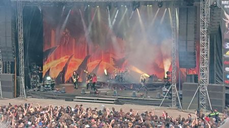 Regardless of that, it’s a decent opener, and the crowd loved them as always. And by the time the intro for “To Hell and Back” came, I said fuck leg injury and we jumped (!!) off the stone staircase and went on the side of the audience (actually fairly close, but very much on the side) and joined in for the jump party. Didn’t feel shit in my leg, I’m happy.