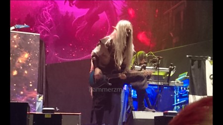 By the way. When the show started, a very familiar blonde got up behind the drumset, and you could hear the crowd whispering “Hannes is back!” Here in Sweden, we have had the pleasure of having Twilight Force’s drummer Daniel Sjögren behind the kit. But now, Hannes’ daughter has been born and he’s back.